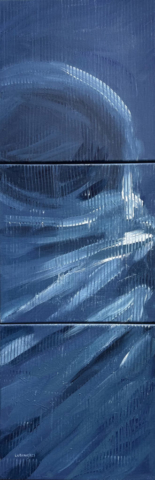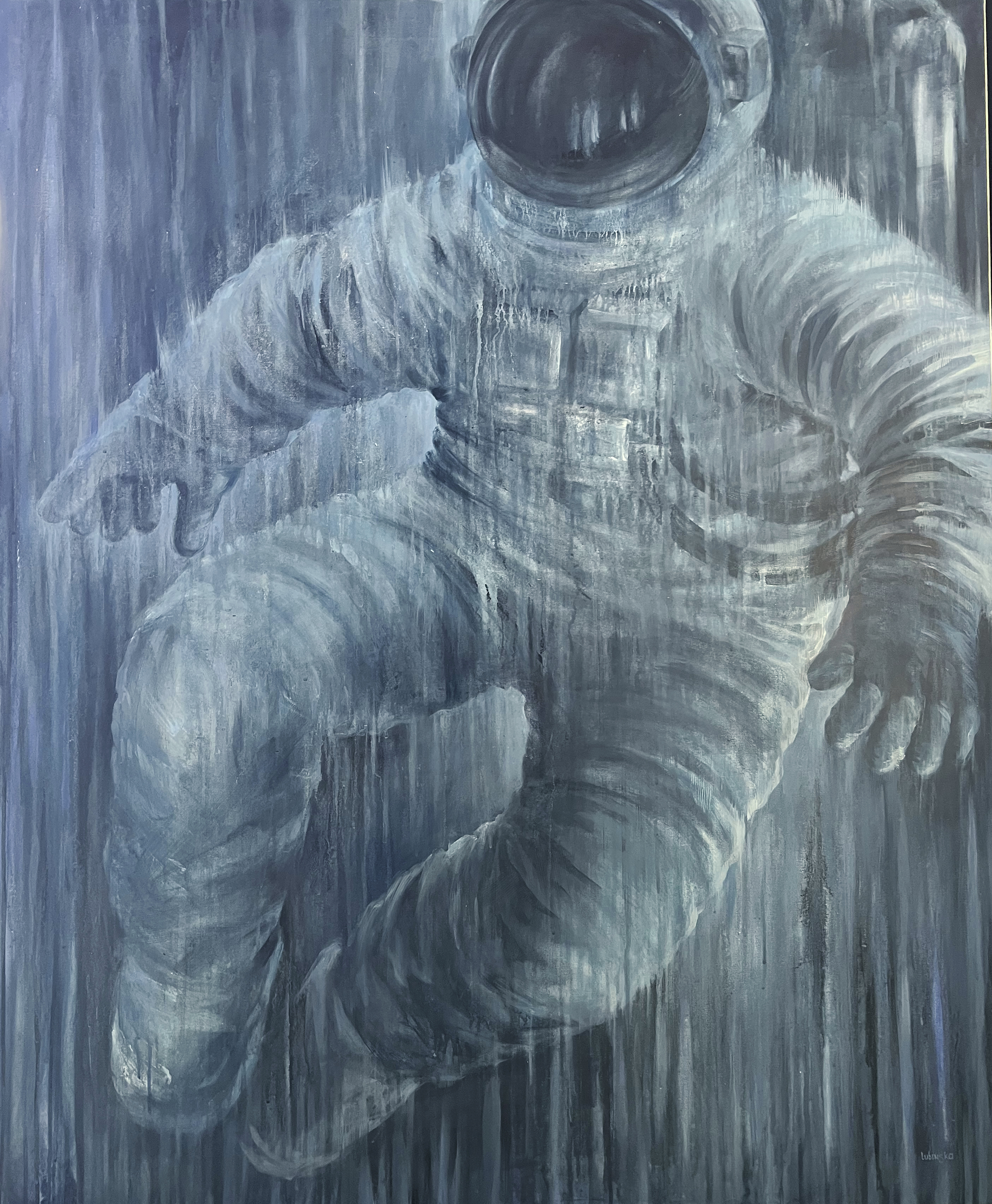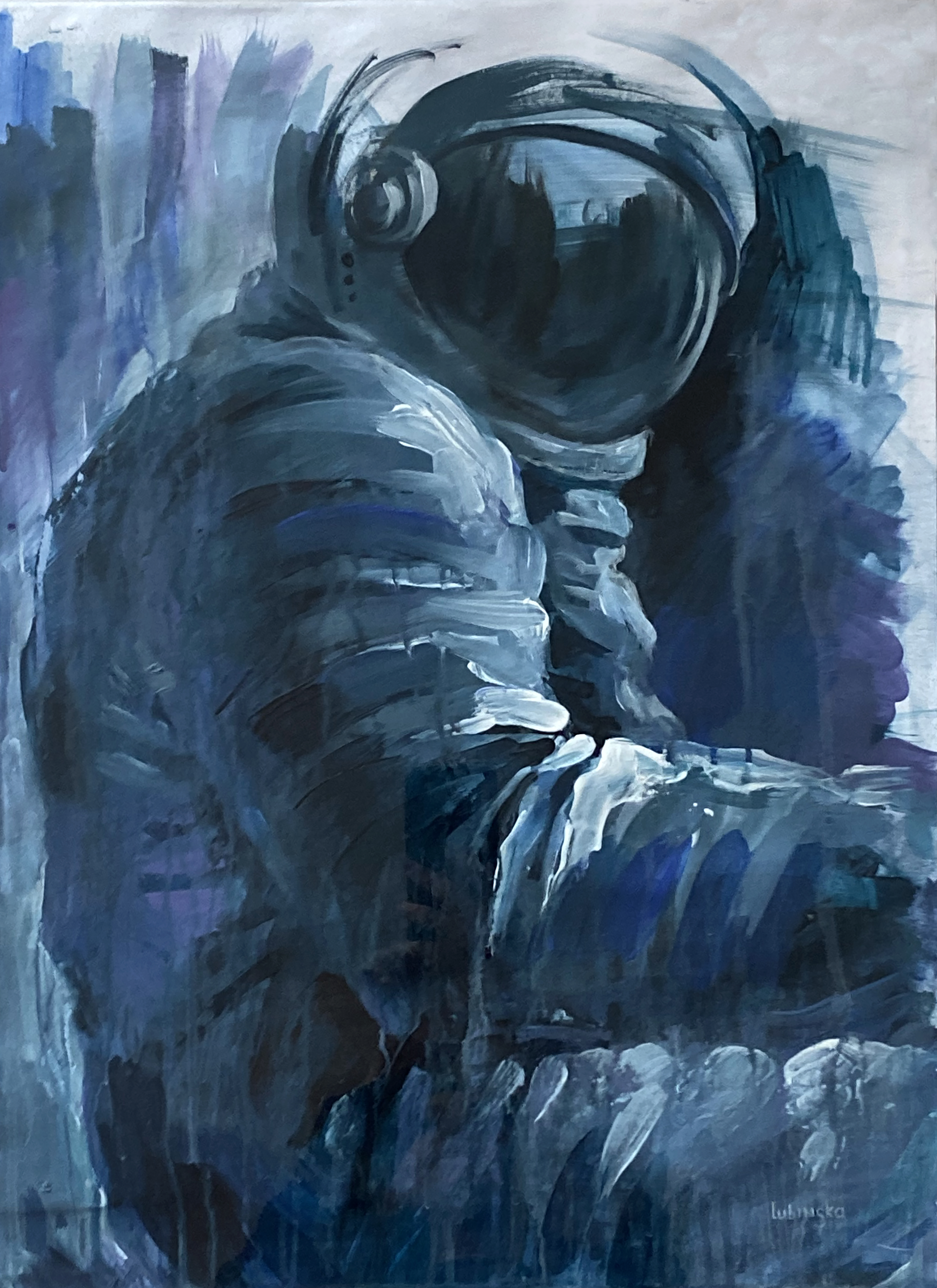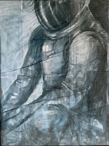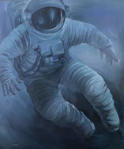 In Homo Astralis, he represents the beginning — the moment humanity leaves Earth not out of conquest but out of continuity. He does not abandon home; he extends it. The blue silence around him is not emptiness, but potential — a medium into which thought and hope are projected.