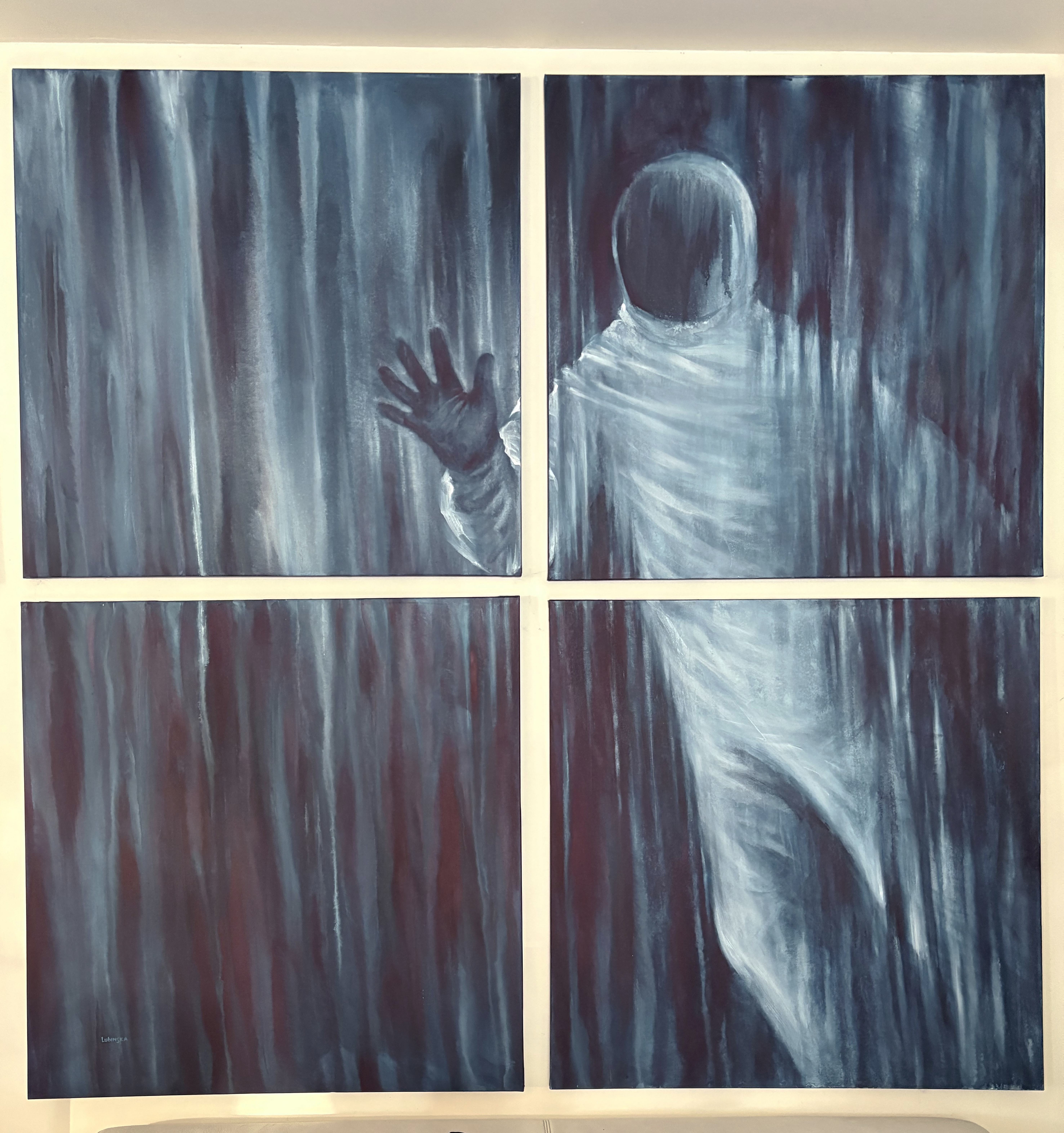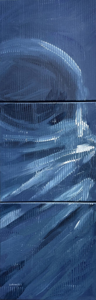 In Refraction, that same figure begins to dissolve. His image shimmers and bends, refracted by the gravity of time itself. Identity becomes fluid; memory becomes multiplicity. The self, once singular, is stretched across timelines, each fragment preserving a different echo of the human. And yet, within that distortion lies recognition: to endure, humanity must learn to change shape.