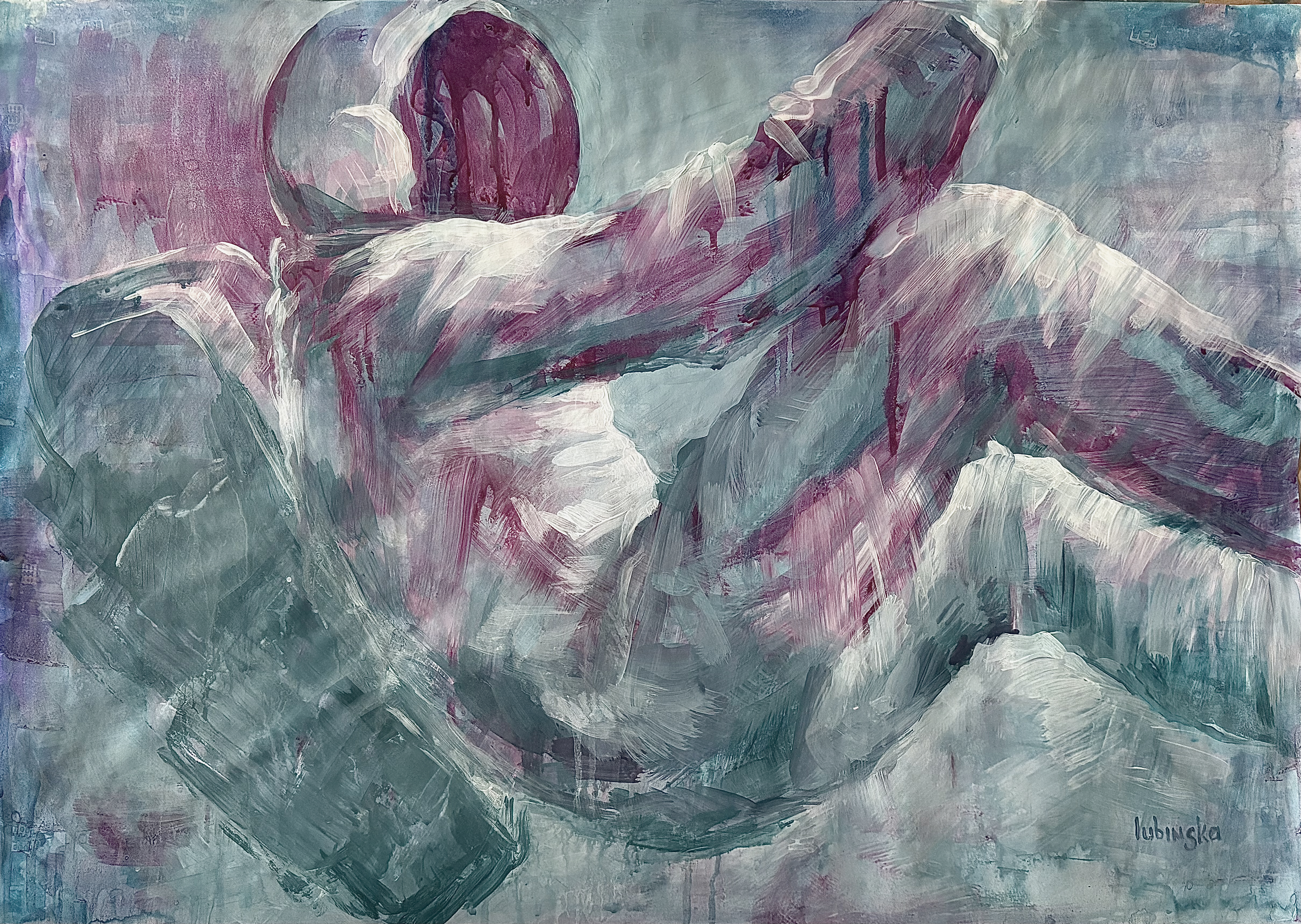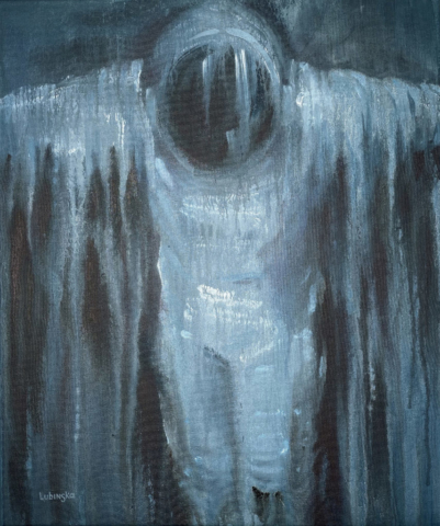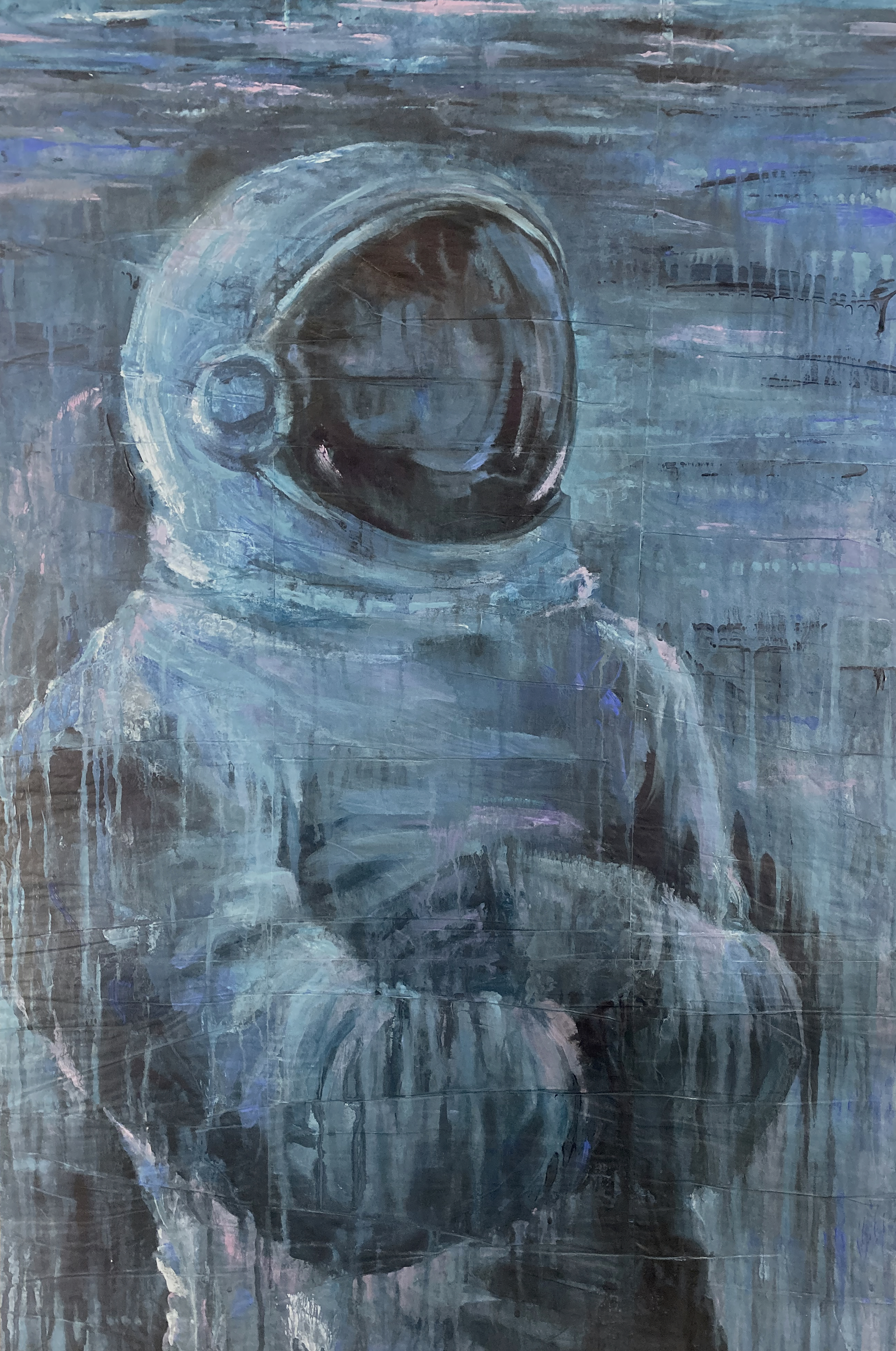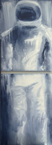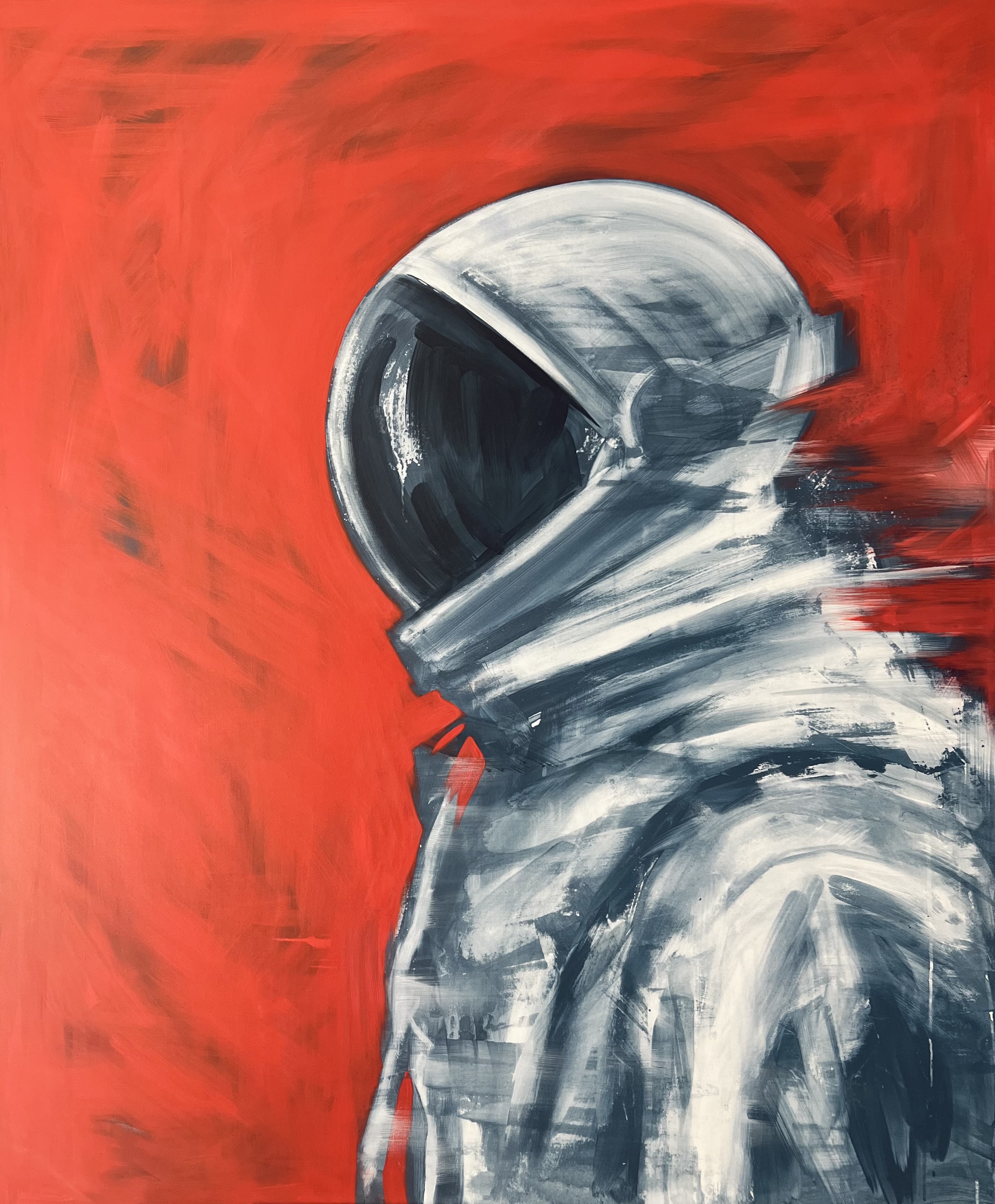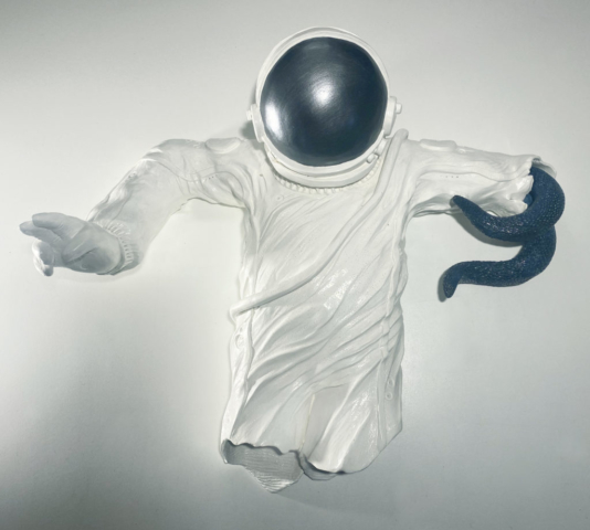 Becoming Continuum carries this further. The astronaut no longer moves through time — he merges with it. His form is both present and fading, not dying but integrating. What once was individual becomes part of a larger pattern: a consciousness dispersed, not lost.